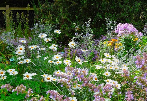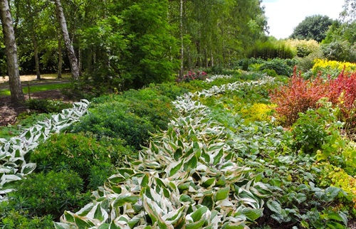 There is always plenty of interest with somewhere always at it's peak. There are areas which change relatively little throughout the year, such as the White Rose Fountains, several oversized sculptures, like the giant wellies, the Conifer Garden, with it's collection of both large and dwarf conifers, Stonehedge (a topiary version of stonehenge) and the Lake & Arboretum. And then there's the main borders, planted to give constant interest all through our opening period. These include the long Double Border, the Lawned Garden and the Raised Bed Garden.