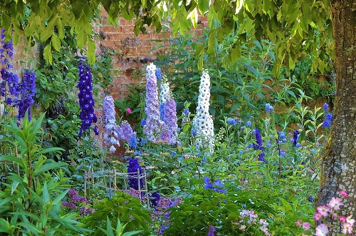 - Double herbaceous borders- with brilliant displays of roses, delphiniums and other perennials.