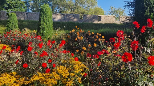 Wander along and around the many herbaceous borders, savour the scent of roses in the parterre, admire the views from the top of the ramparts, meander through the Arboretum, admire the reflection of the Cathedral in one of the well pools, explore what is growing in the Community Garden and, finally, take a moment to recharge your batteries in the contemporary Garden of Reflection.