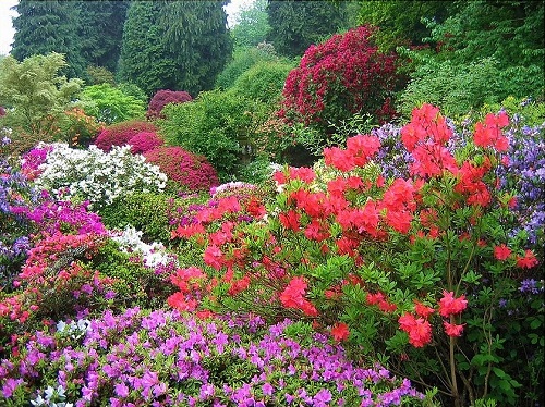 From April to mid June the Gardens are a riot of colour with beautiful reflections from the ponds.